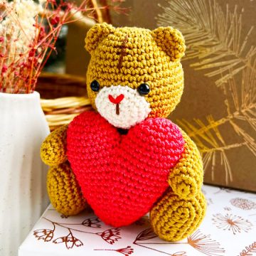 How about making a wonderful teddy bear amigurumi toy for Valentine’s Day? The detail that makes this amigurumi bear, which looks very cute, different is that it is holding a big heart in its lap. You can find how to
