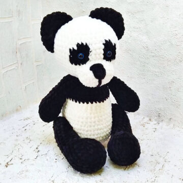 Recently, the demand for teddy bear amigurumi patterns has been decreasing. However, new patterns are still being designed. Today, I will share a wonderful panda pattern. This crochet panda, made with velvet rope, has a very symmetrical structure. Almost every